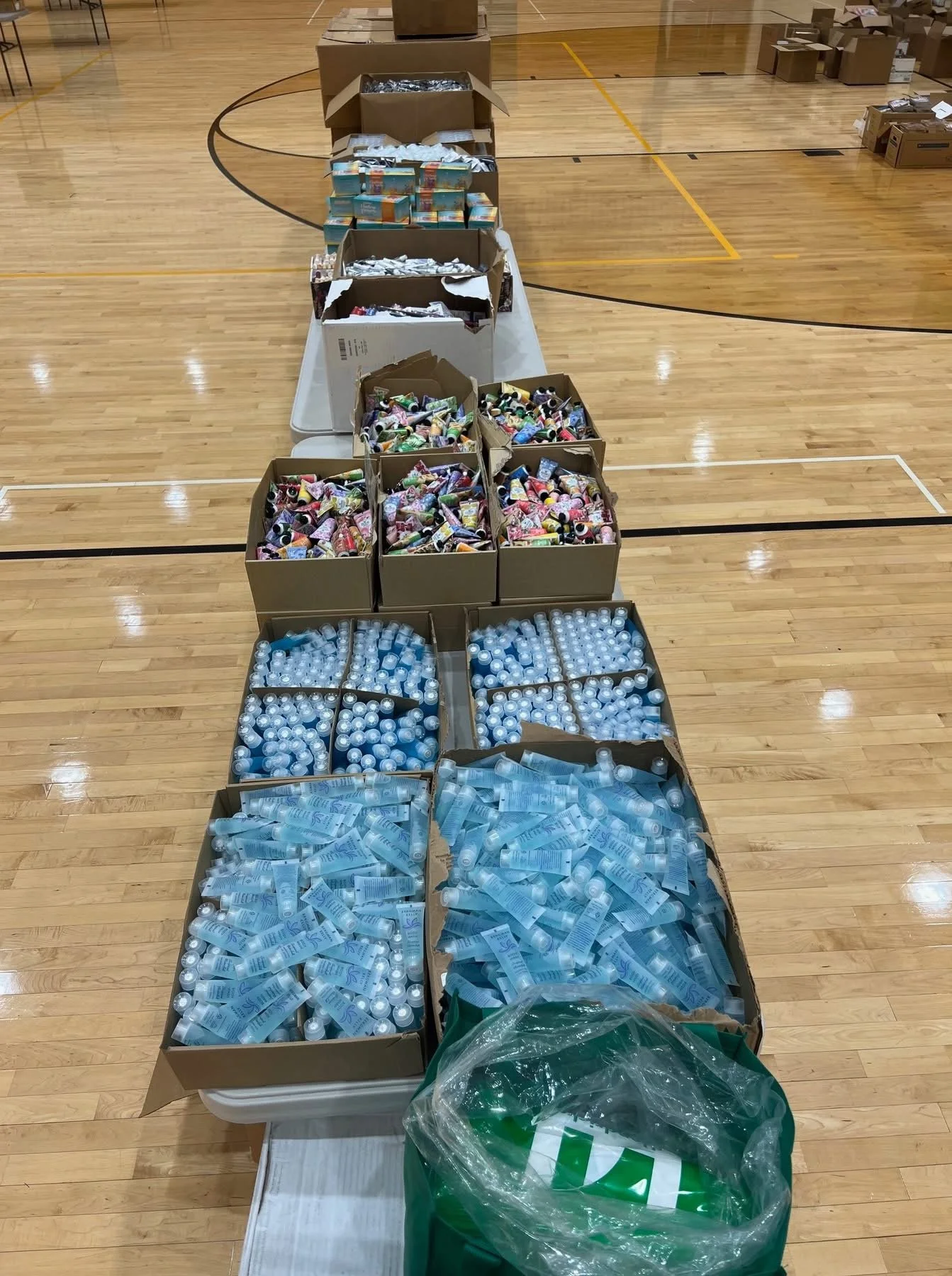 Hygiene kits were packed by volunteers during the week and distributed to every child at the event.